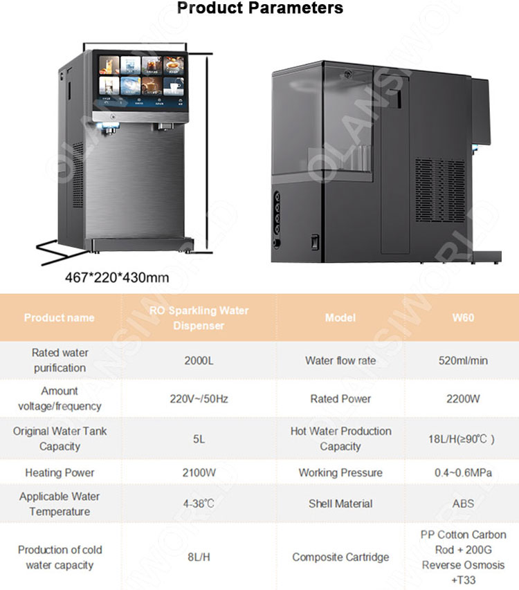 | Product name | RO Sparkling Water Dispenser | Model | W60 |