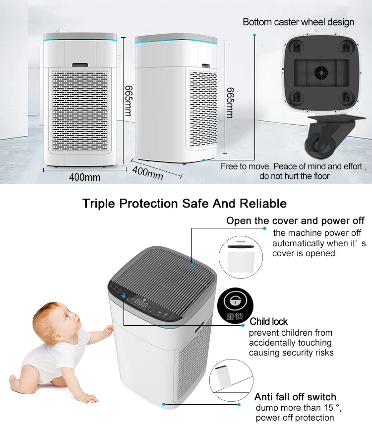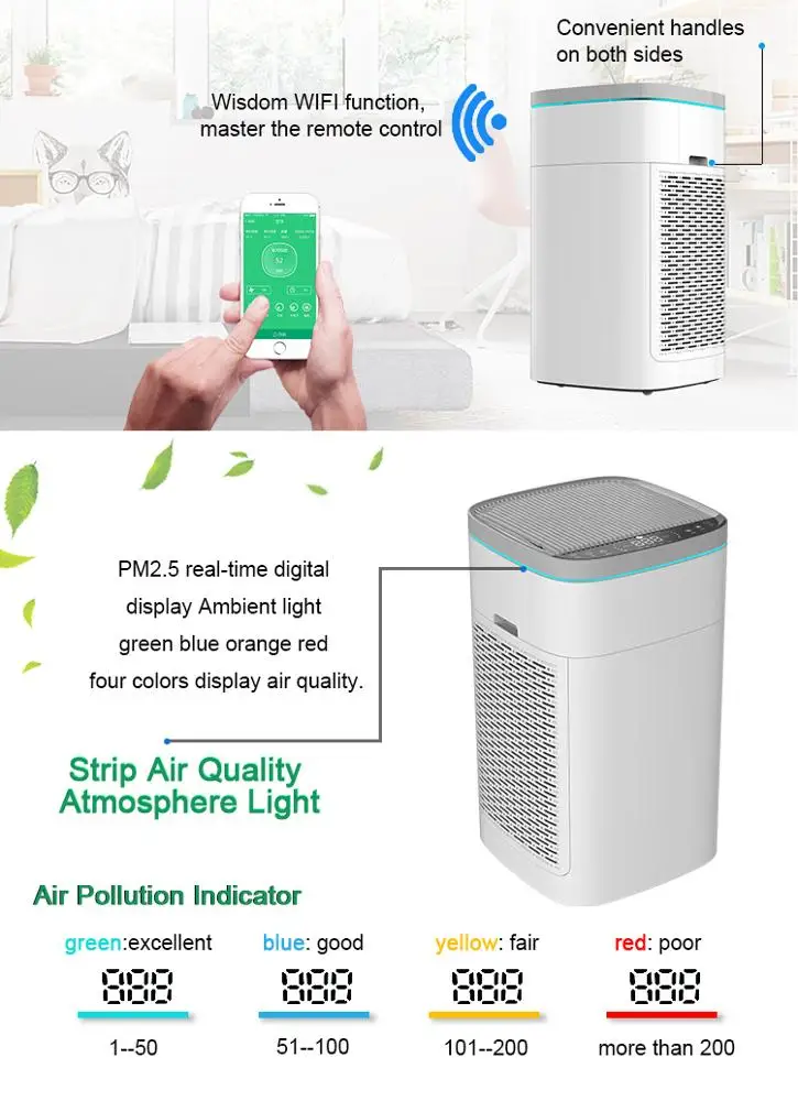 6.Small body effect, High CADR Low noise, Multiple powerful purification, Infrared sensor accurate,Wifi Control, Operation humane |