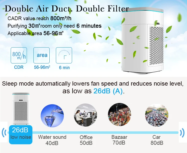 K15C Negative Ions PM2.5 CADR 800 Double Air Duct Filter Air Cleaner Purifiers